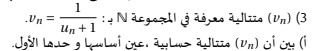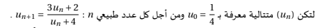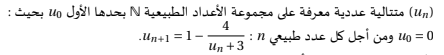 **التمرين الثاني**لتكن (un) متتالية معرفة كمايليu0=3وun+1=4un−2un+1.من أجل x≠−1, نضع f(x)=4x−2x+1.