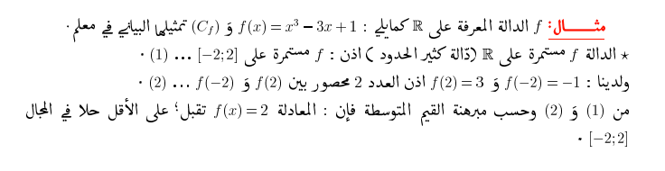 * بين أن المعادلة `f (x)=0` تقبل حل وحيد `alpha` على المجل `]a;b[`